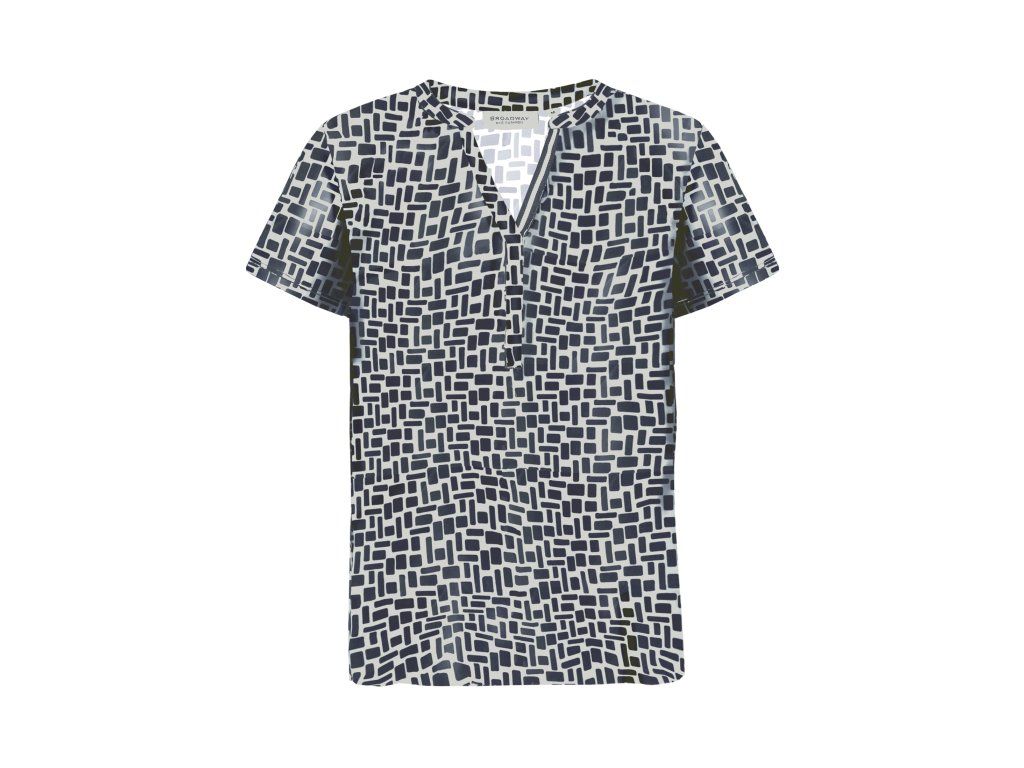Model vyniká vzdušným krátkym rukávom a krásne tvarovaným V-výstrihom bez goliera. Tento odľahčený dizajn dodáva blúzke ženskosť, opticky predlžuje líniu krku a je mimoriadne praktický na nosenie.