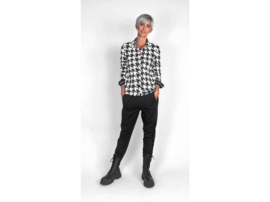 - Dámska košeľová blúzka s celoplošným vzorom kohútej stopy