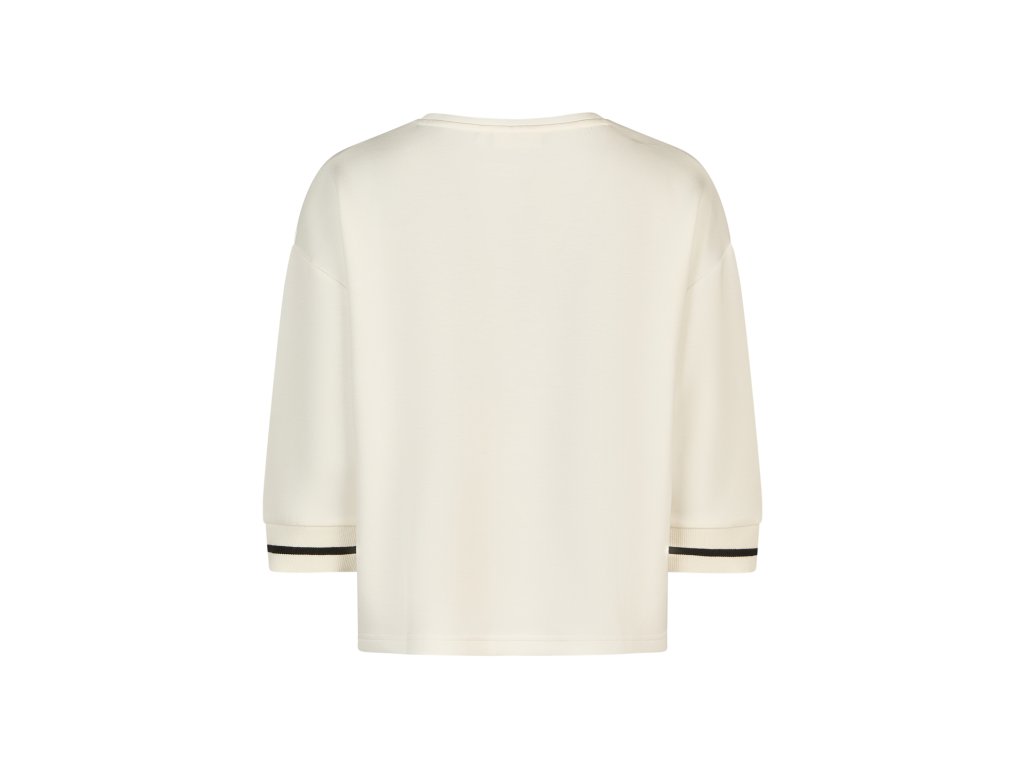 Vďaka špecifickému zloženiu si mikina krásne drží tvar, neobopína postavu a pôsobí upravene za každých okolností. Jej oversized strih výborne maskuje prípadné nedokonalosti a poskytuje úplnú voľnosť pohybu. Dizajn je rafinovane doplnený o klasický okrúhly výstrih s lemom a 3/4 spadnuté rukávy. Tie sú zakončené pružnou rebrovanou manžetou s pútavým kontrastným prúžkom. Táto športovo-elegantná mikina sa ľahko kombinuje – perfektne vyzerá k džínsom, teplákom ale aj k nohaviciam do práce.