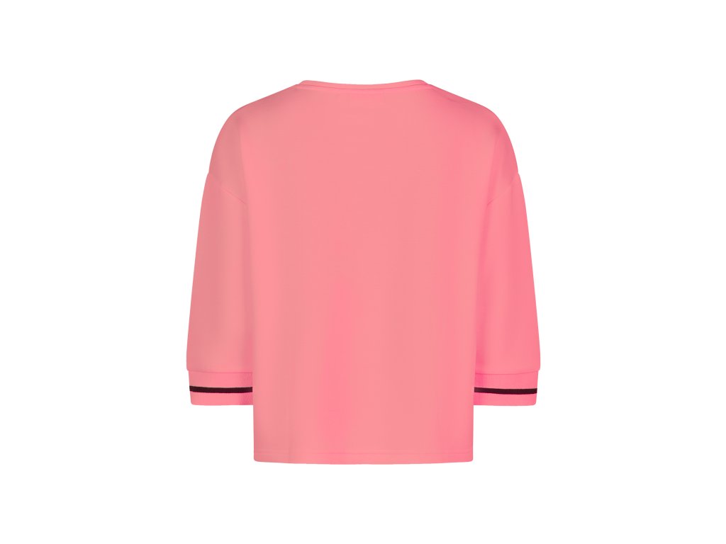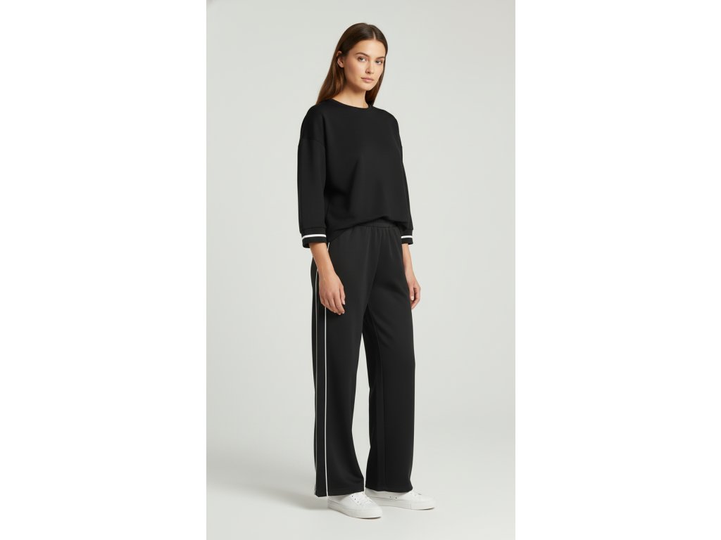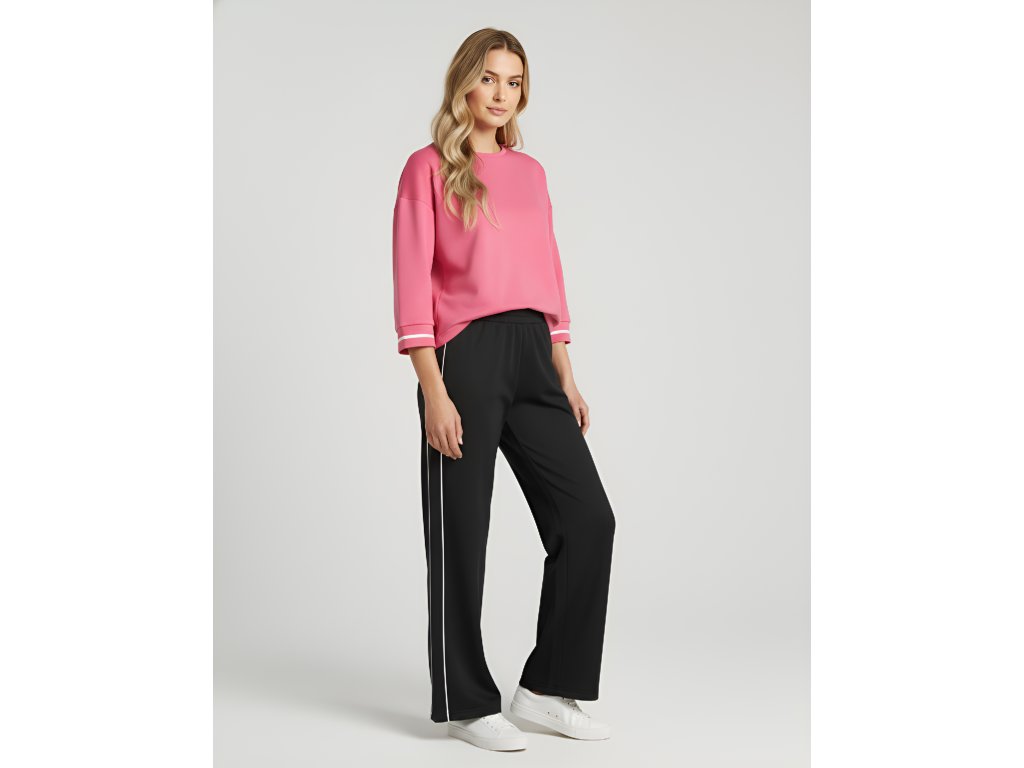 Vďaka špecifickému zloženiu si mikina krásne drží tvar, neobopína postavu a pôsobí upravene za každých okolností. Jej oversized strih výborne maskuje prípadné nedokonalosti a poskytuje úplnú voľnosť pohybu. Dizajn je rafinovane doplnený o klasický okrúhly výstrih s lemom a 3/4 spadnuté rukávy. Tie sú zakončené pružnou rebrovanou manžetou s pútavým kontrastným prúžkom. Táto športovo-elegantná mikina sa ľahko kombinuje – perfektne vyzerá k džínsom, teplákom ale aj k nohaviciam do práce.
