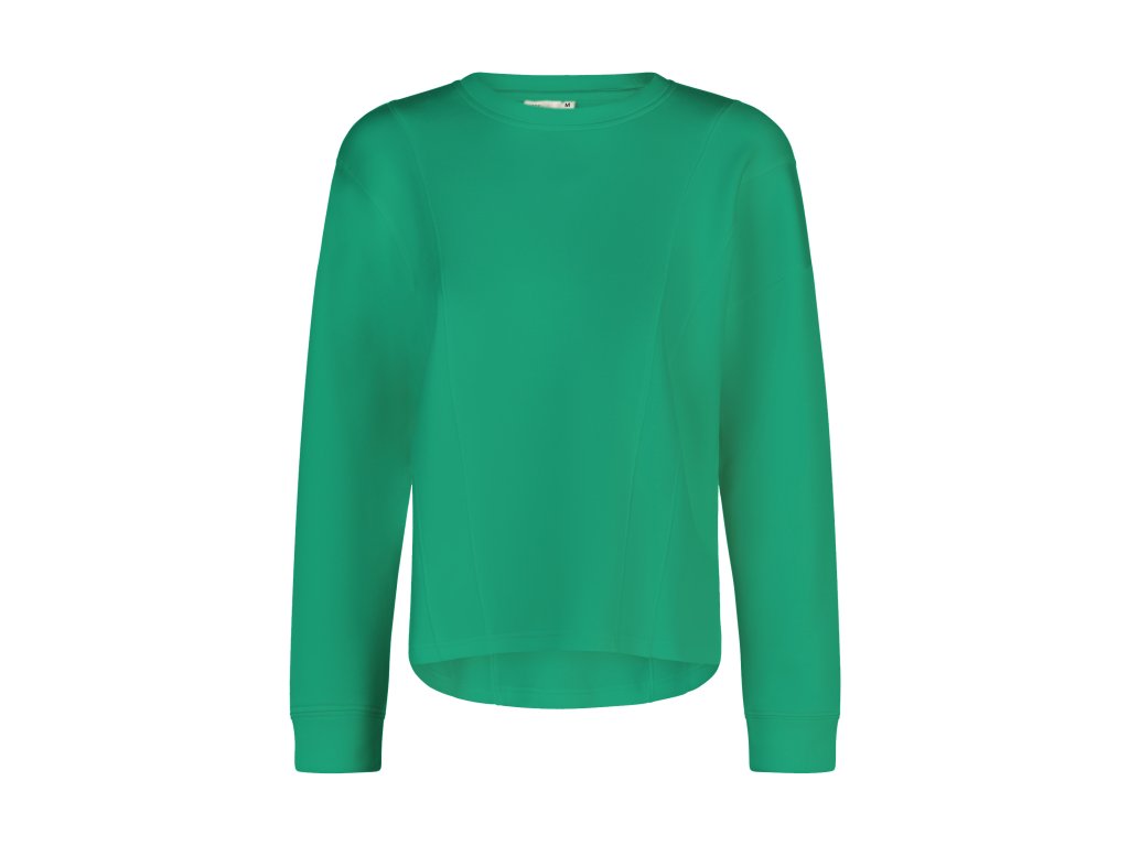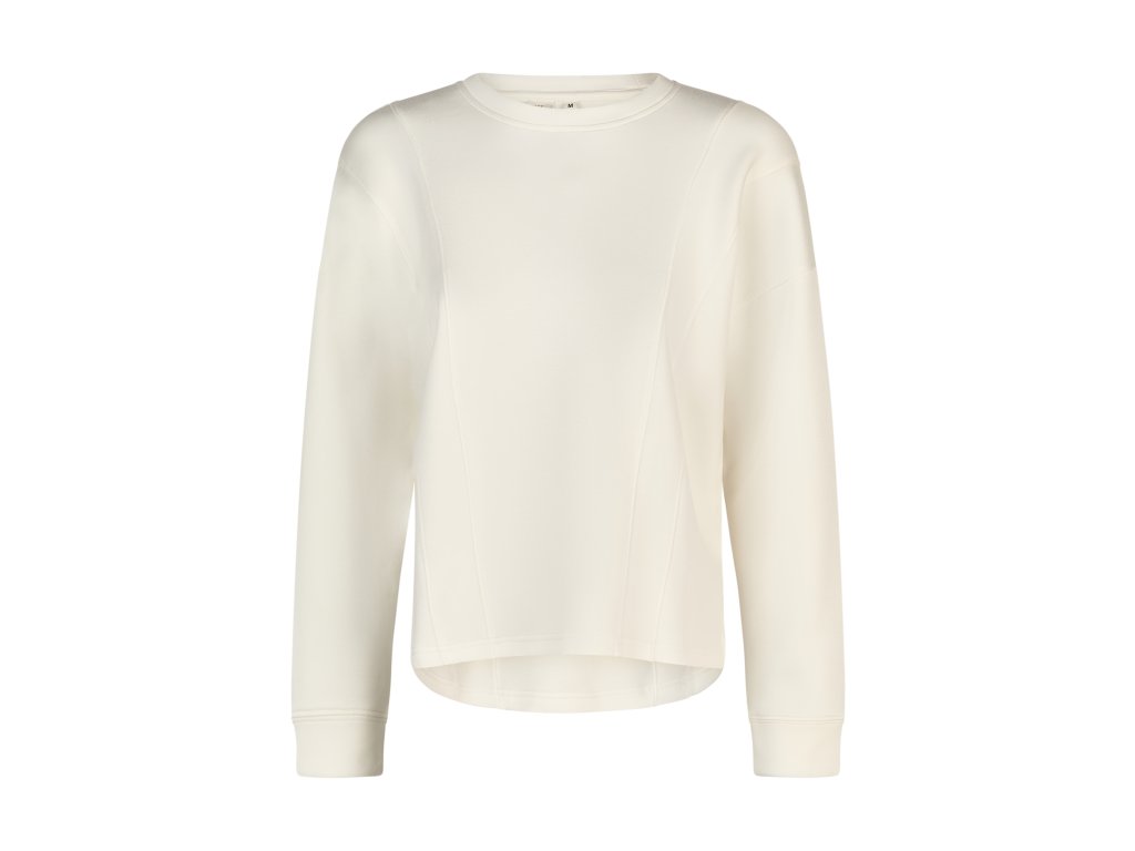 Minimalistická mikina s okrúhlym výstrihom a čistým dizajnom bez potlače. Má dlhé rukávy a pohodlný, mierne voľnejší strih so spadnutými ramenami, vďaka čomu sa dobre nosí na bežný deň aj na vrstvenie. Spodný lem je jemne zaoblený a manžety na rukávoch držia tvar.