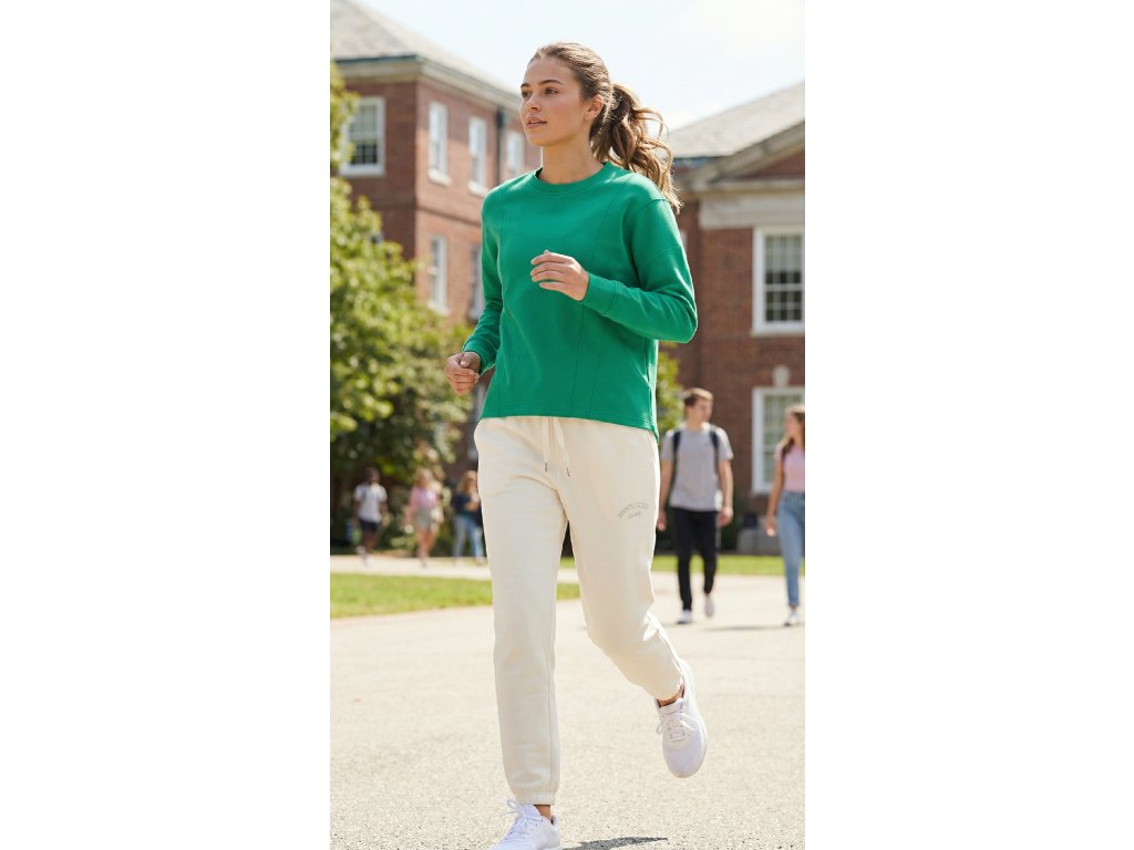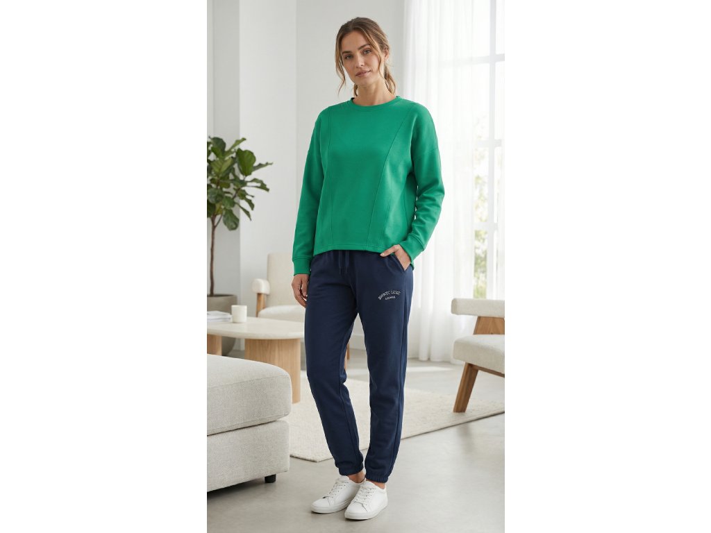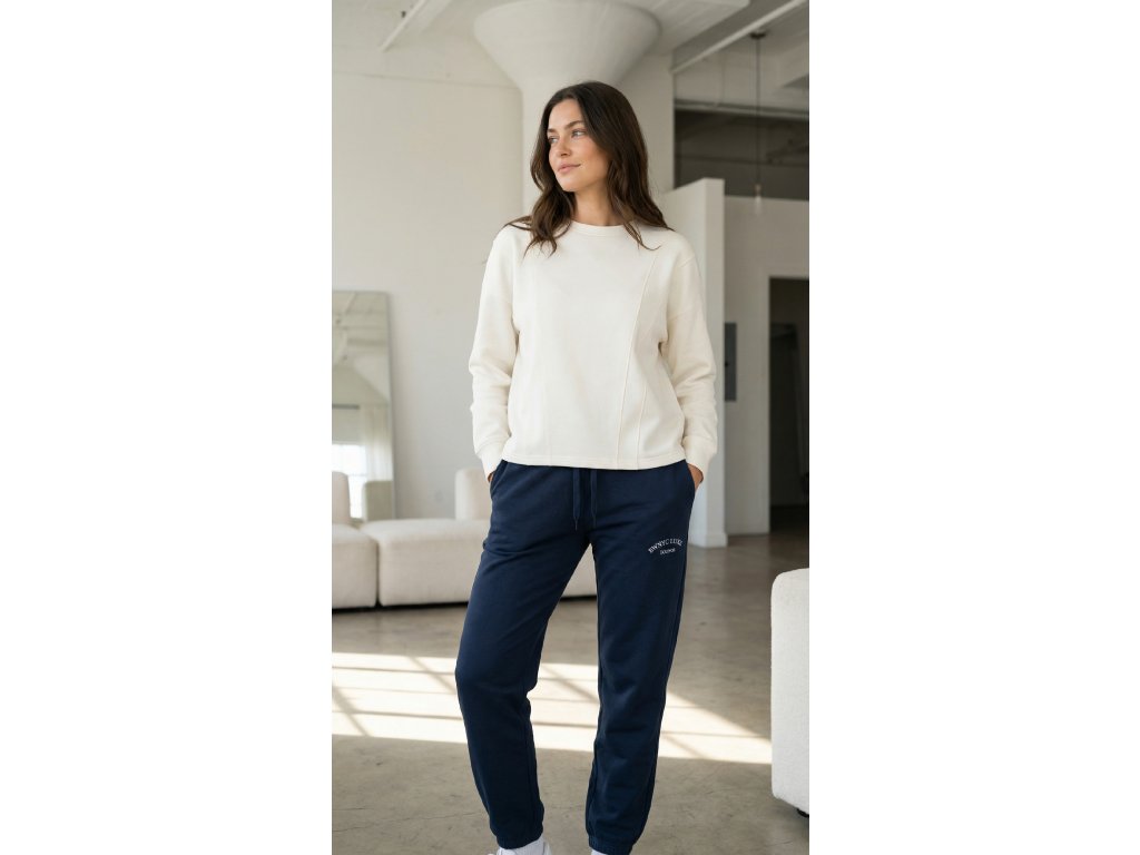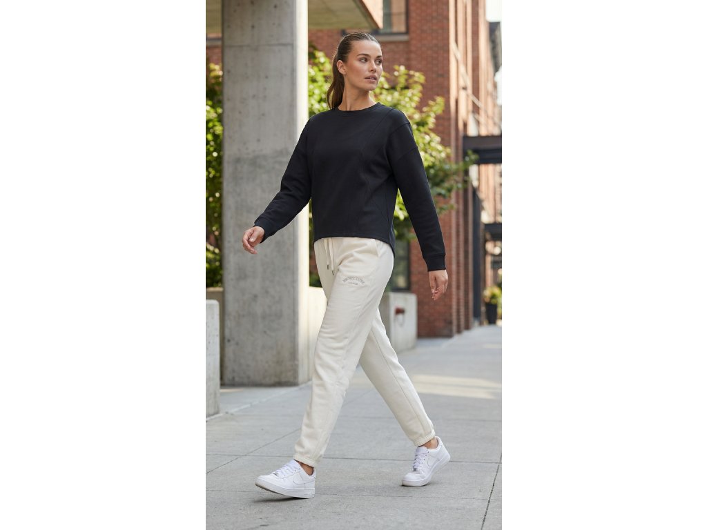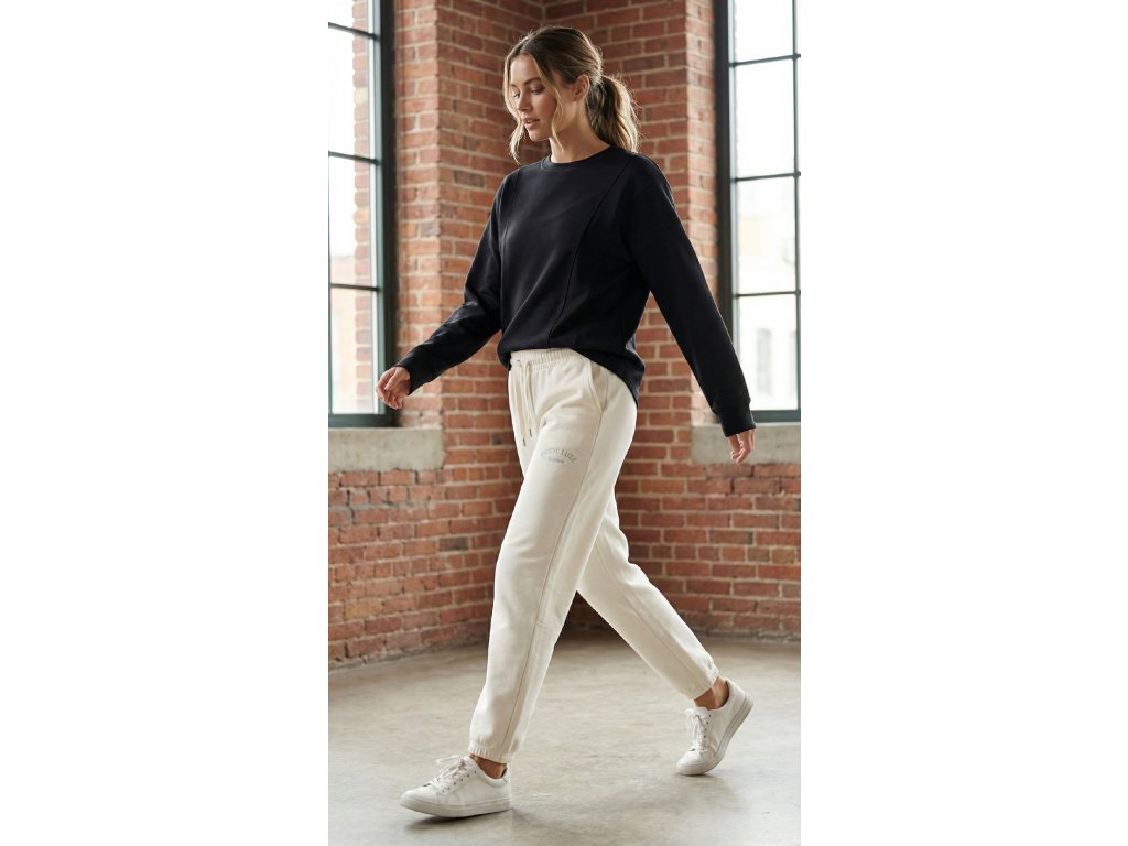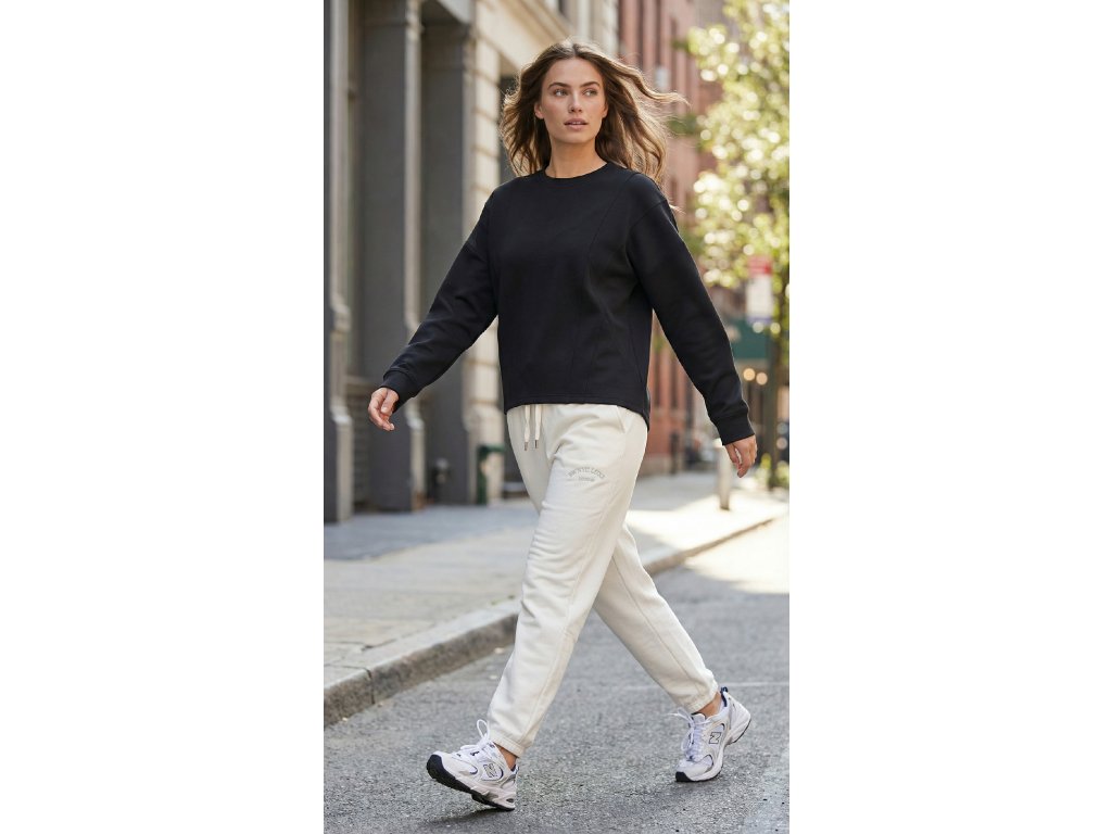 Minimalistická mikina s okrúhlym výstrihom a čistým dizajnom bez potlače. Má dlhé rukávy a pohodlný, mierne voľnejší strih so spadnutými ramenami, vďaka čomu sa dobre nosí na bežný deň aj na vrstvenie. Spodný lem je jemne zaoblený a manžety na rukávoch držia tvar.