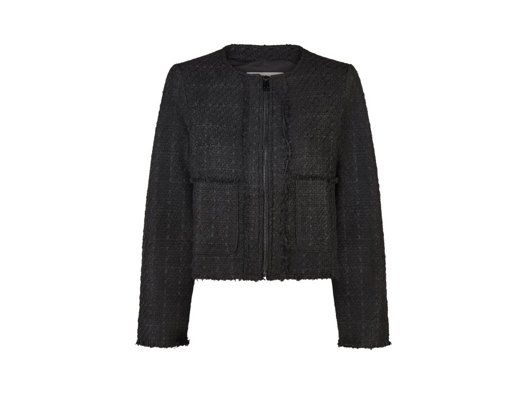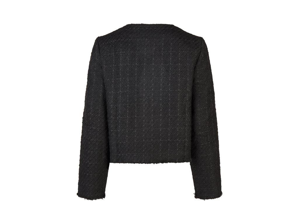 Prechodný buklé krátky kabátik BROADWAY NYC Fashion BLACK určený na prechodné počasie. Okraje sú mierne strapkané, čo dodáva ležérny, ale stále elegantný charakter. Tento kúsok je veľmi univerzálny – dá sa nosiť ako elegantné sako k blúzke a nohaviciam, ale aj ako ľahká bunda k džínsom a tričku.