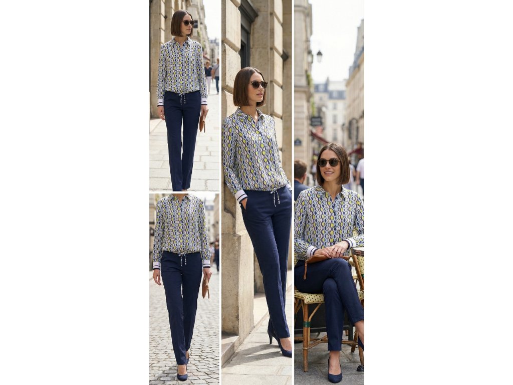 Celkový vzhľad nohavíc je uhladený a elegantný, vhodný do práce, na každodenné nosenie aj na formálnejšie príležitosti. Strih opticky predlžuje nohy a pôsobí štíhlo.
