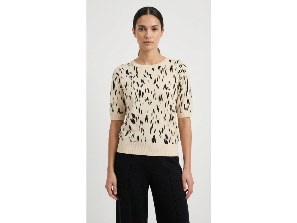 Dámsky jemný pulóver s krátkym rukávom BROADWAY NYC FASHION PRINT SAND