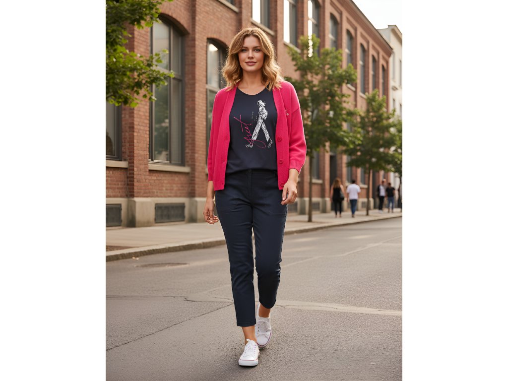 Pletený sveter (ľahká strickjacke) KENNYS s výšivkou LOVELY je ideálny na vrstvenie počas celého roka. Na prvý pohľad zaujme veľkorysým V-výstrihom, ktorý krásne predĺži krk a umožní nosiť pod ním top, tričko aj košeľu. Zapínanie je riešené gombíkmi po celej dĺžke, takže ho môžete nosiť klasicky ako kardigán alebo len ležérne prehodený cez ramená.