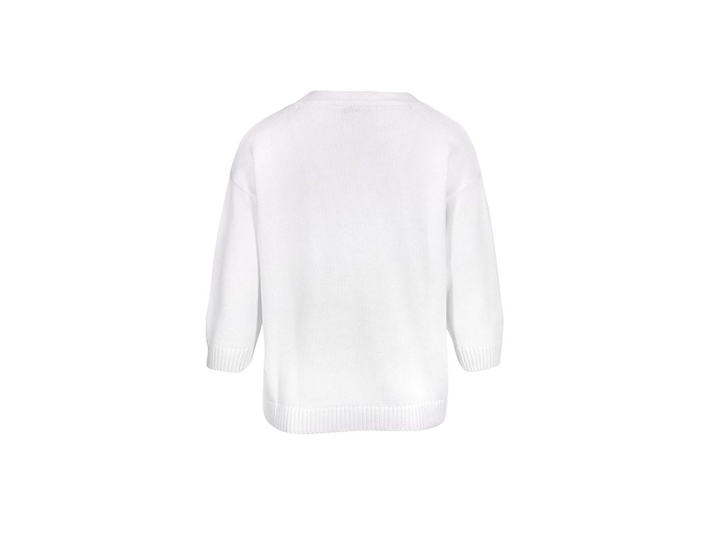 Strih je oversized – voľný, pohodlný a moderný. Spadnuté ramená a uvoľnená silueta vytvárajú nenútený „casual chic“ efekt, ktorý vyzerá skvelo k džínsom, elegantným nohaviciam aj k šatám. Rukávy sú v trendovej 7/8 dĺžke a zakončené rebrovanými manžetami, vďaka čomu sveter drží tvar a pôsobí upravene aj pri voľnejšom strihu. Spodný okraj má rovný priebeh lemu a rebrované ukončenie, ktoré pekne „uzavrie“ celkový look.