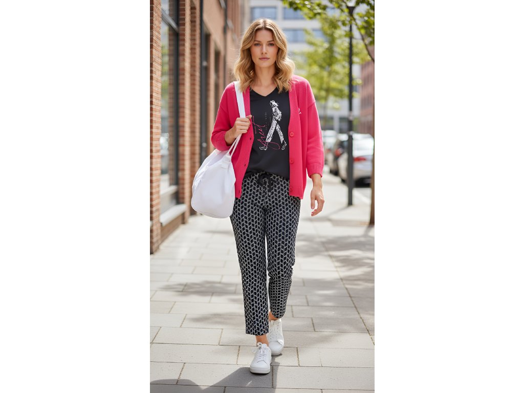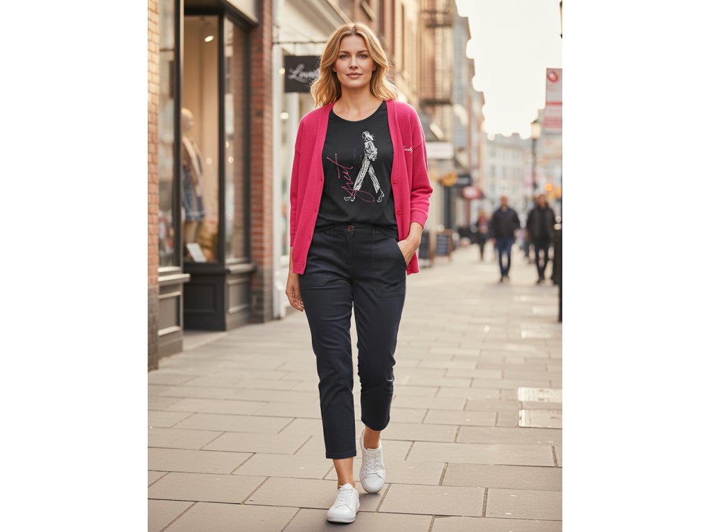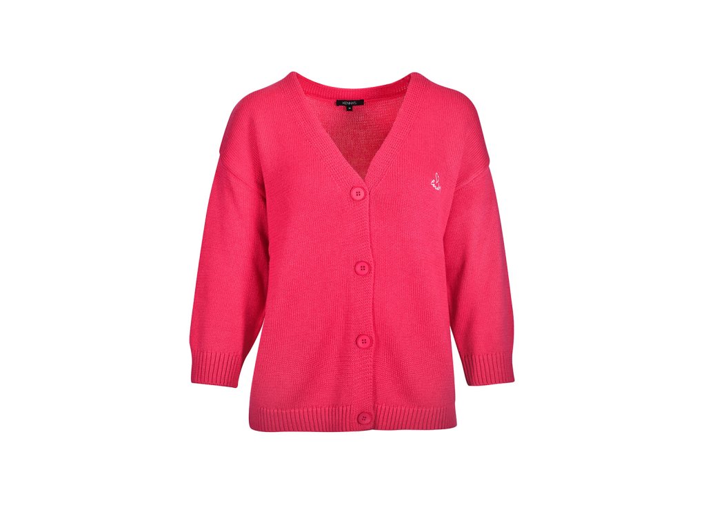 Pletený sveter (ľahká strickjacke) KENNYS s výšivkou LOVELY je ideálny na vrstvenie počas celého roka. Na prvý pohľad zaujme veľkorysým V-výstrihom, ktorý krásne predĺži krk a umožní nosiť pod ním top, tričko aj košeľu. Zapínanie je riešené gombíkmi po celej dĺžke, takže ho môžete nosiť klasicky ako kardigán alebo len ležérne prehodený cez ramená.