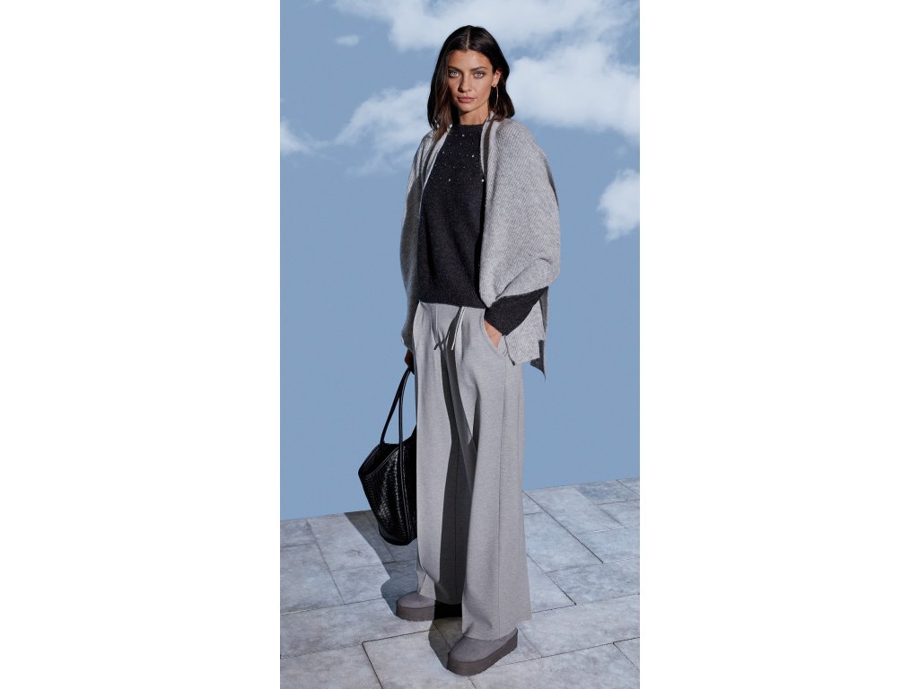 Pulóver BROADWAY NYC FASHION ANTHRA MELANGE s perličkami si skvele skombinuješ s nohavicami Pohodlné nohavice BROADWAY NYC FASHION LIGHT GREY MELANGE Celkový outfit má moderný a ležérne elegantný vzhľad – spája komfort so štýlom, vhodný na jesenné alebo zimné obdobie.