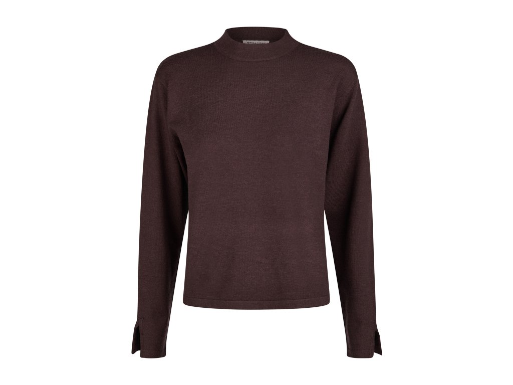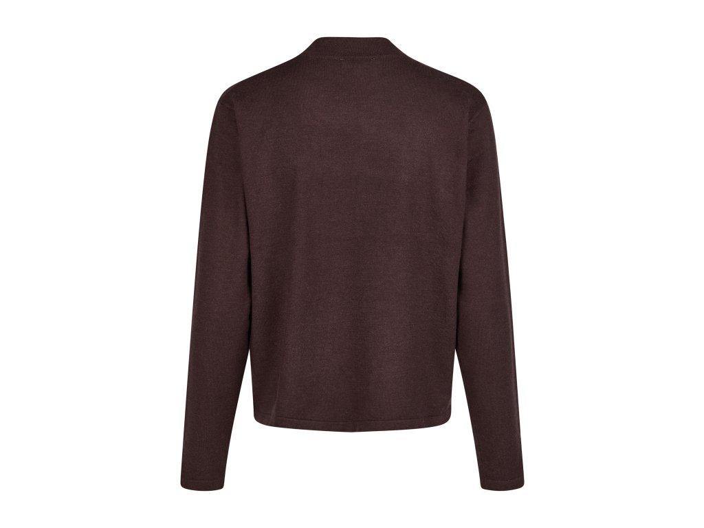 Farba pulóvra je tmavohnedá, s teplým čokoládovým odtieňom.