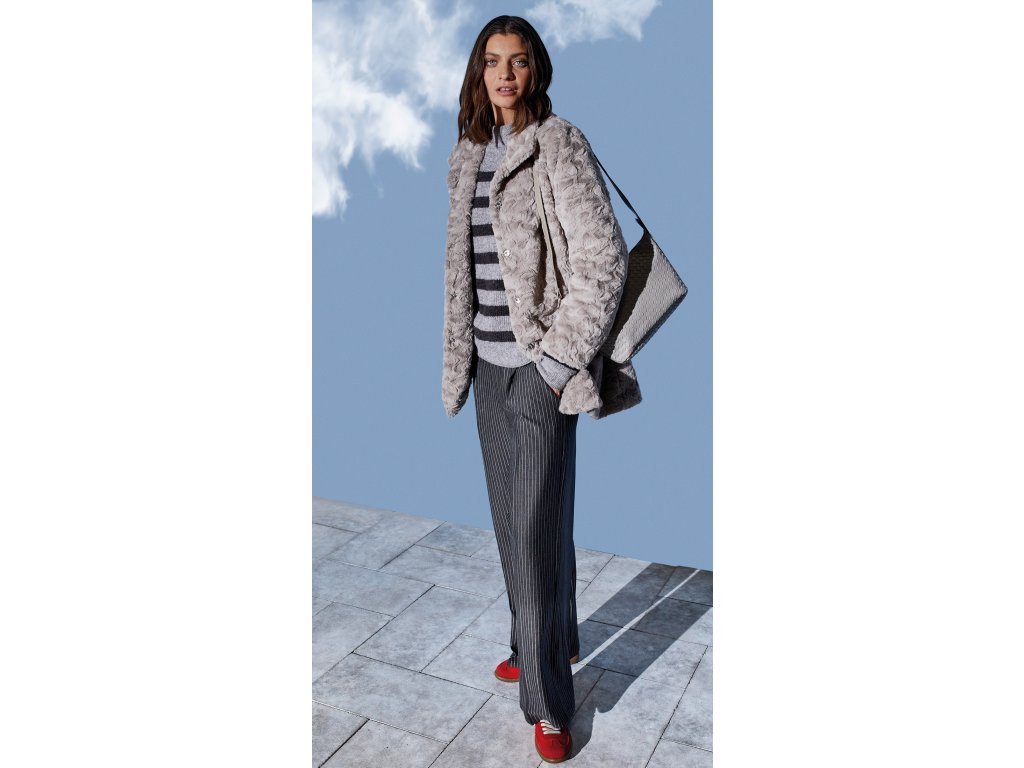 Materiál pôsobí mäkko a hrejivo, ideálny na prechodné obdobie alebo zimné dni.