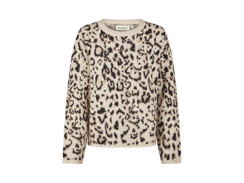 - pulóver s okrúhlym výstrihom s celoplošným leopardím vzorom
