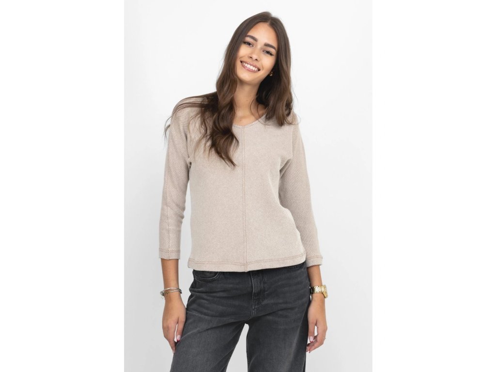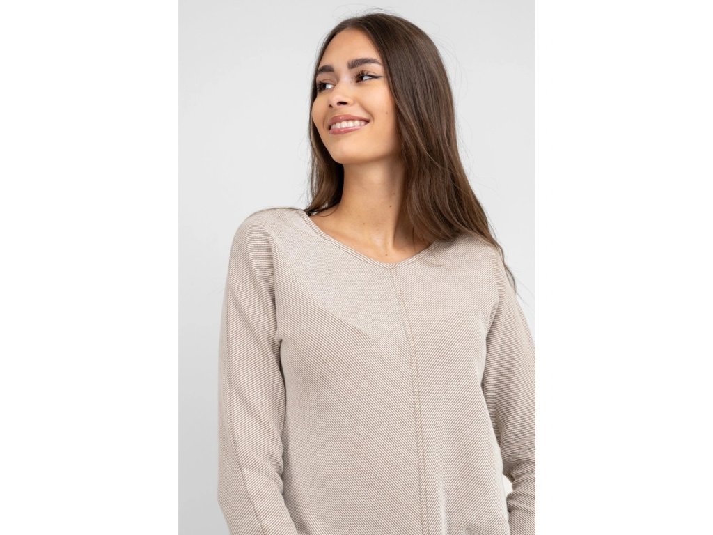 Pulóver BROADWAY NYC FASHION TOFFEE v jemnej béžovej karamelovej farbe. Pohodlný, ležérny štýl vhodný na každodenné nosenie, ale aj na formálnejšie príležitosti – doplnené elegantnými doplnkami.