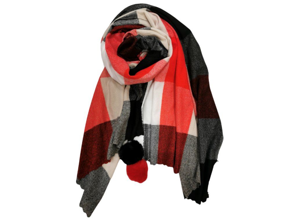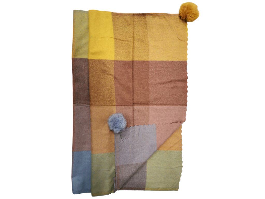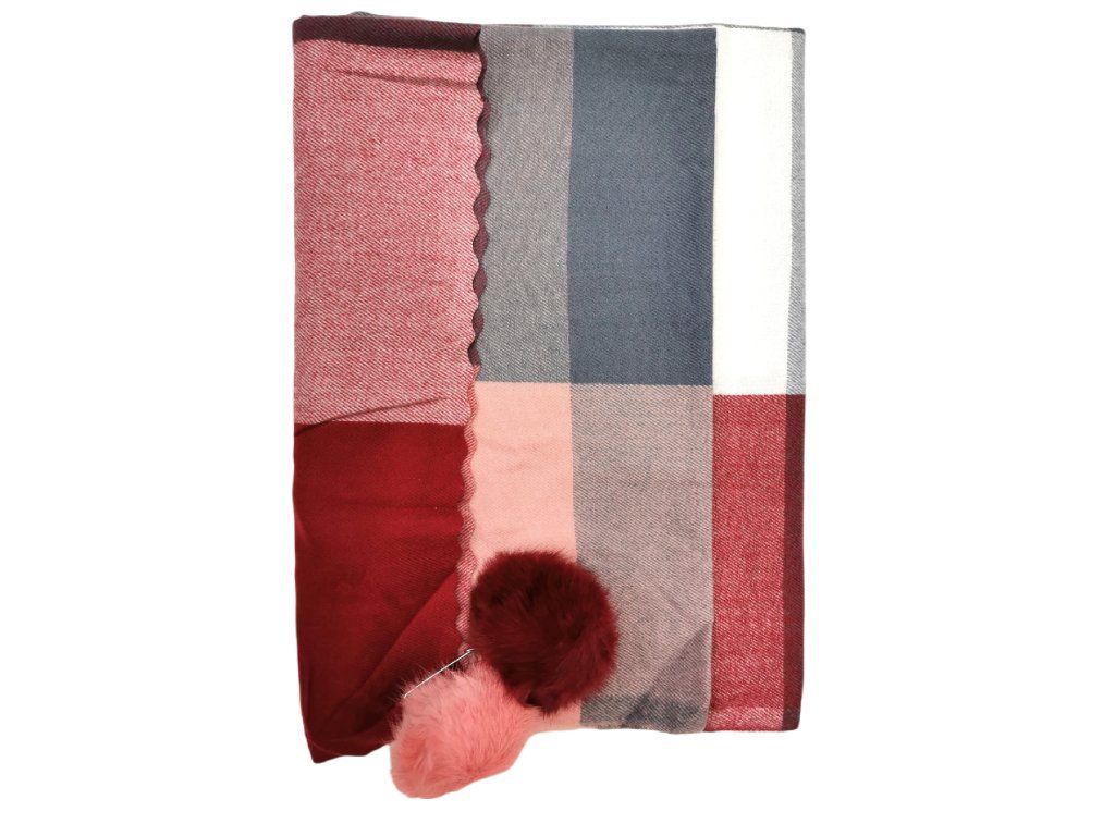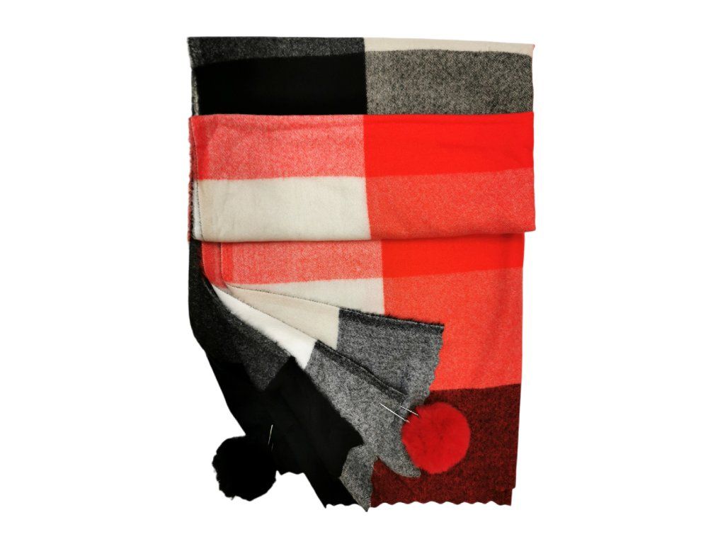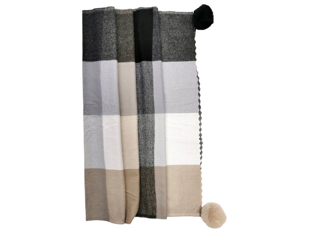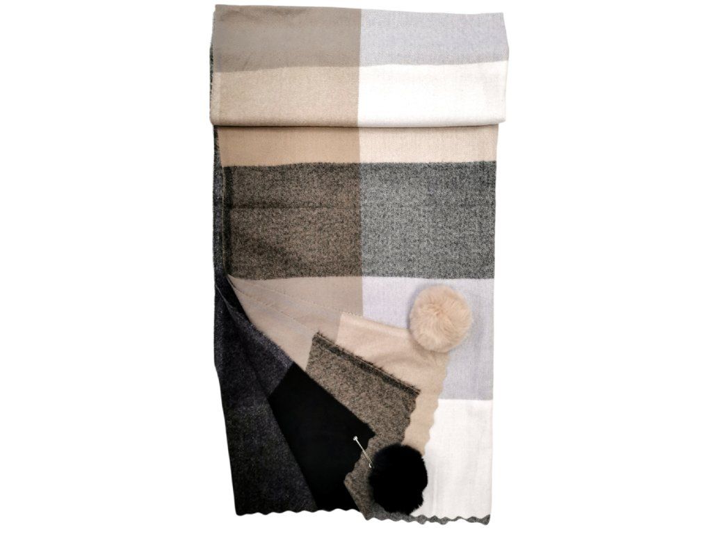 Hrejivý kockovaný šál s odopínateľnými bambuľami