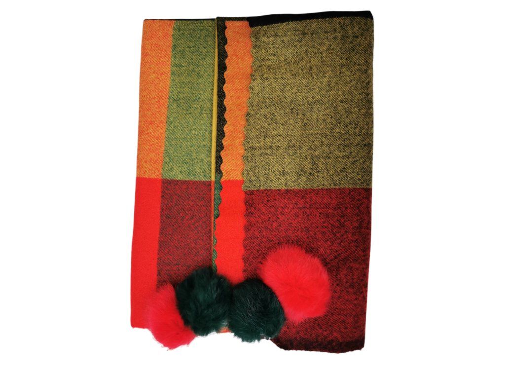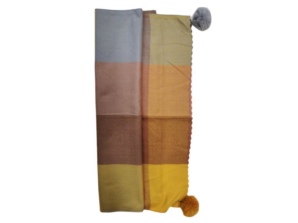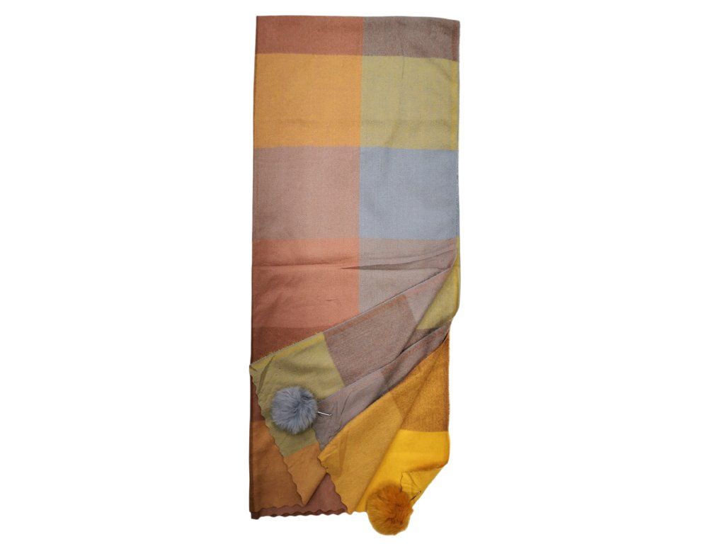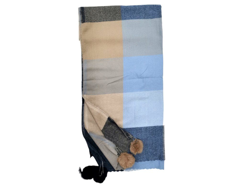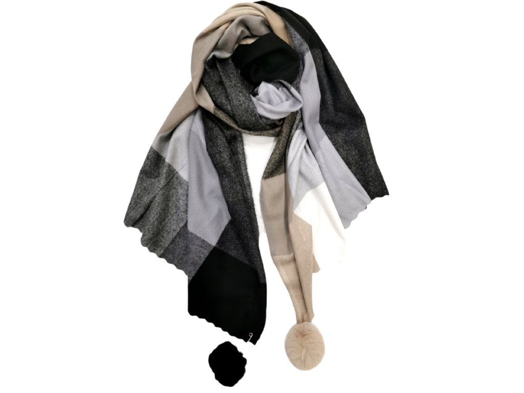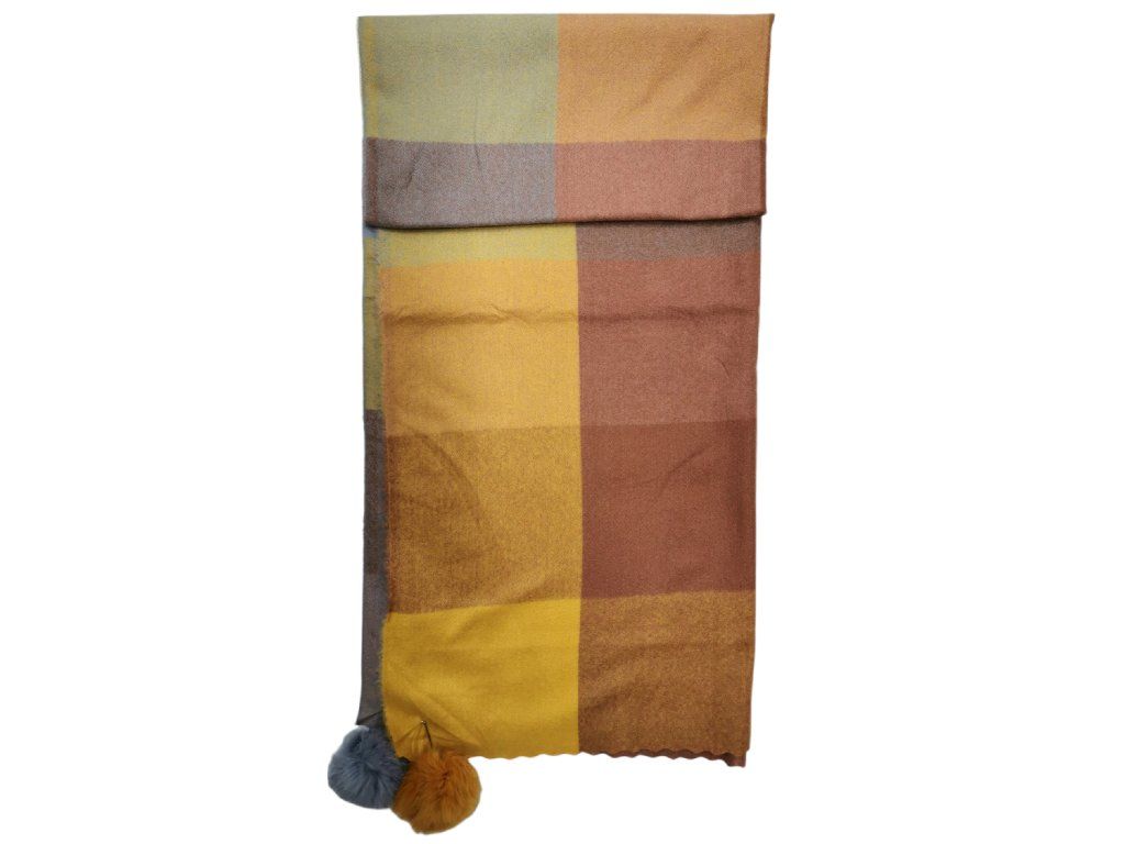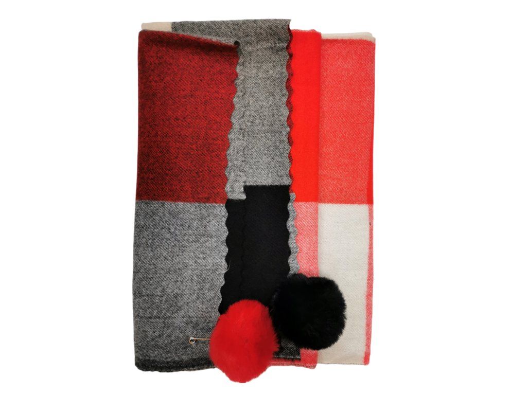 Hrejivý kockovaný šál s odopínateľnými bambuľami