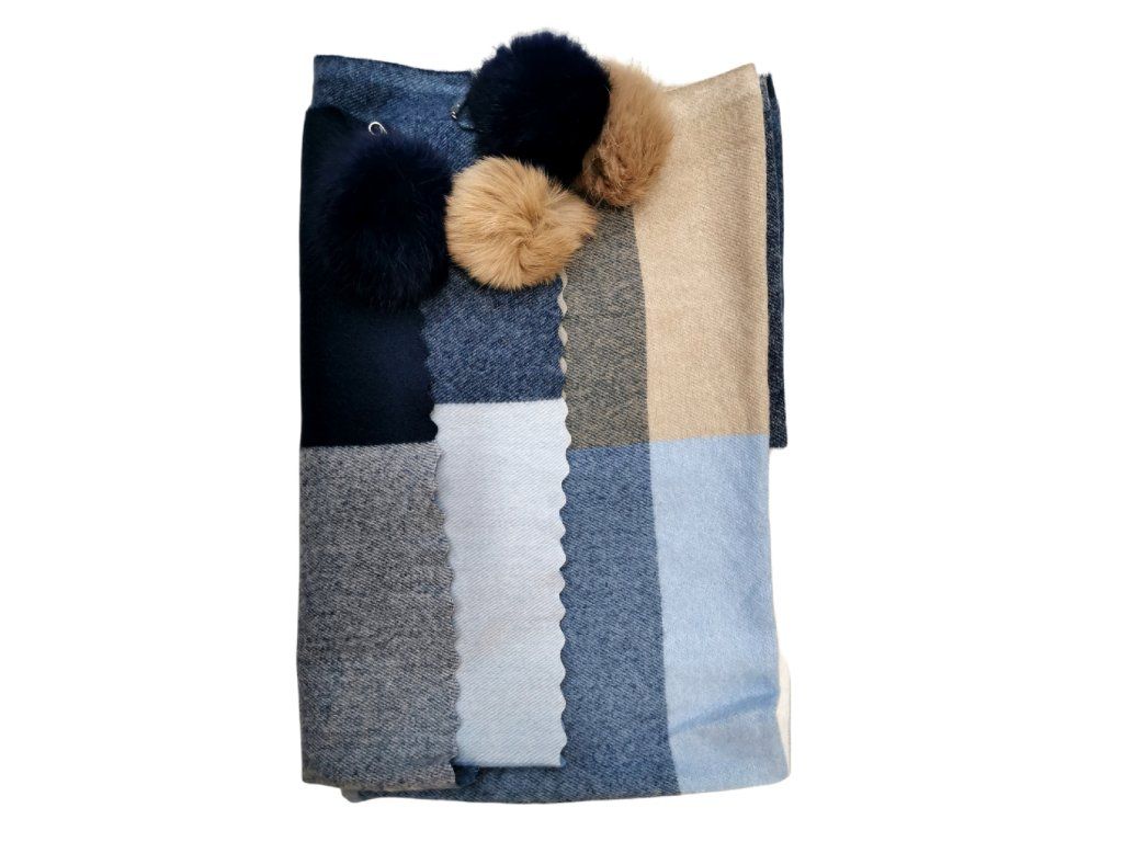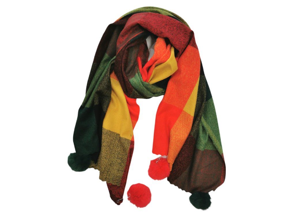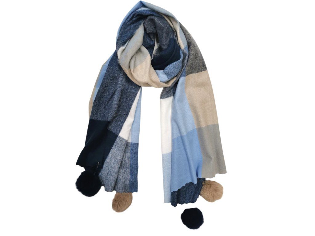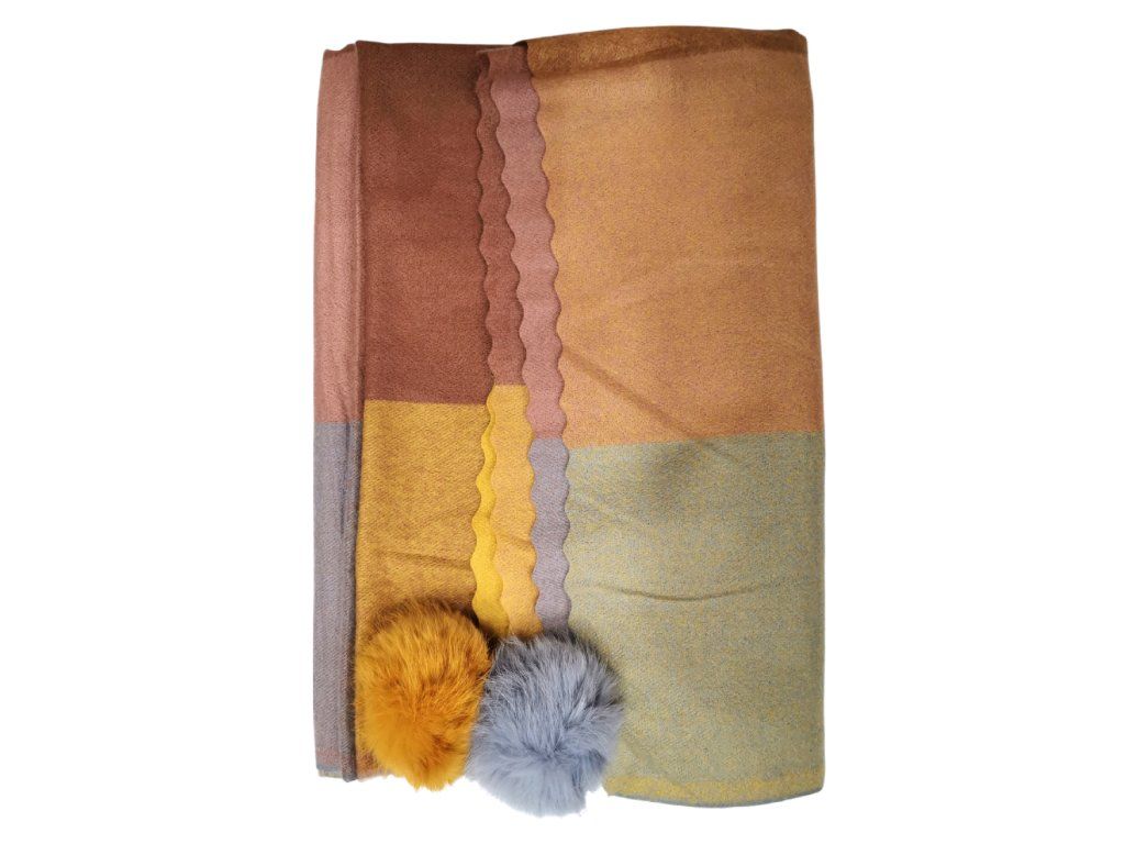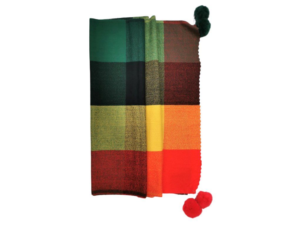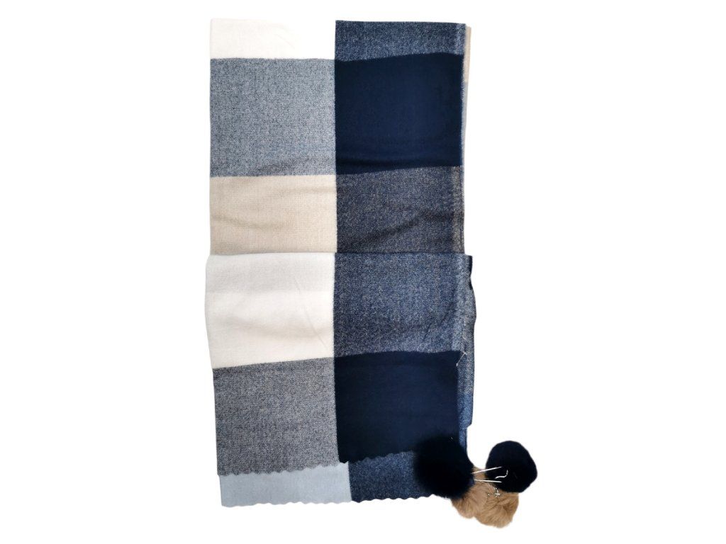 Hrejivý kockovaný šál s odopínateľnými bambuľami