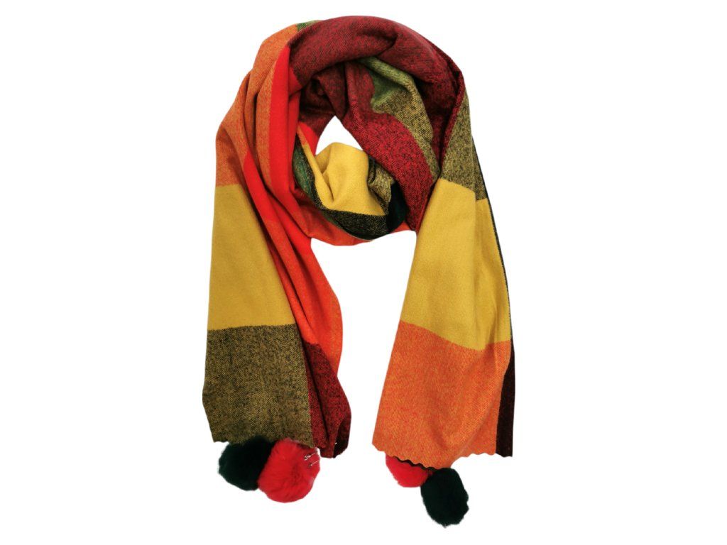 Hrejivý károvaný šál s odopínateľnými bambuľami