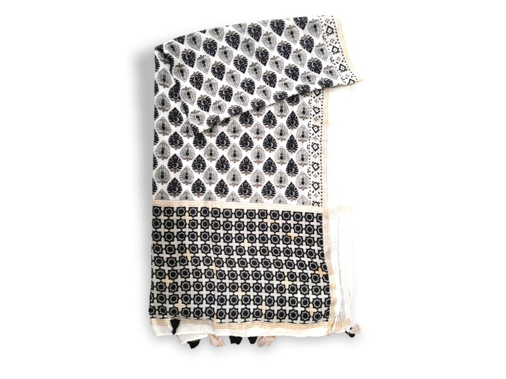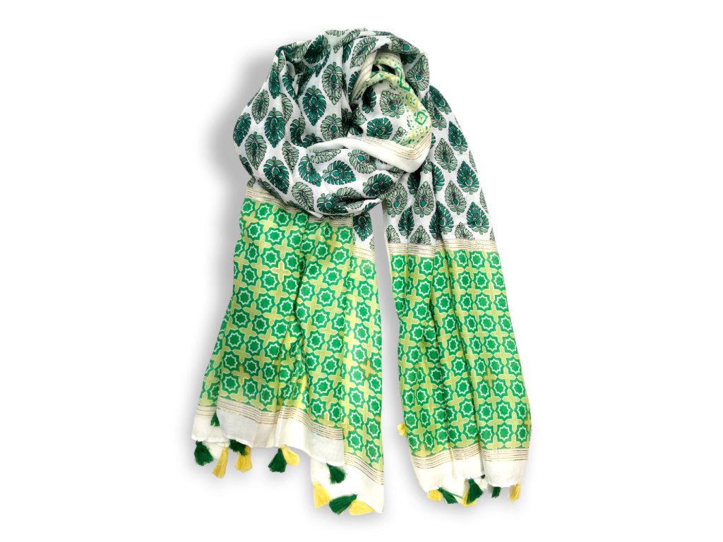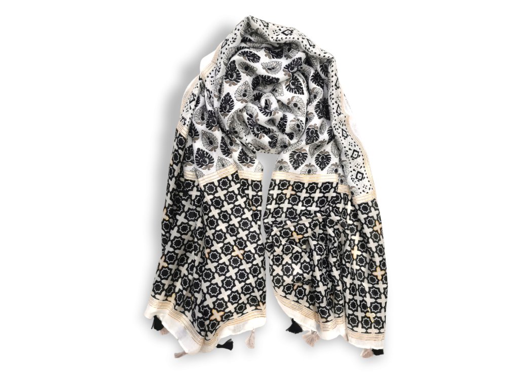 - jemný ľahký šál mix vzorom so strapcami so zlatým akcentom