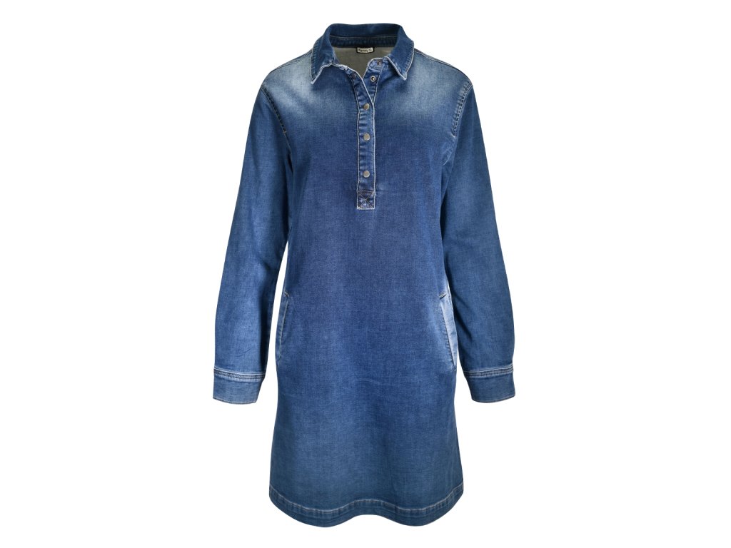 - športové denimové šaty zo strečovej džínsoviny