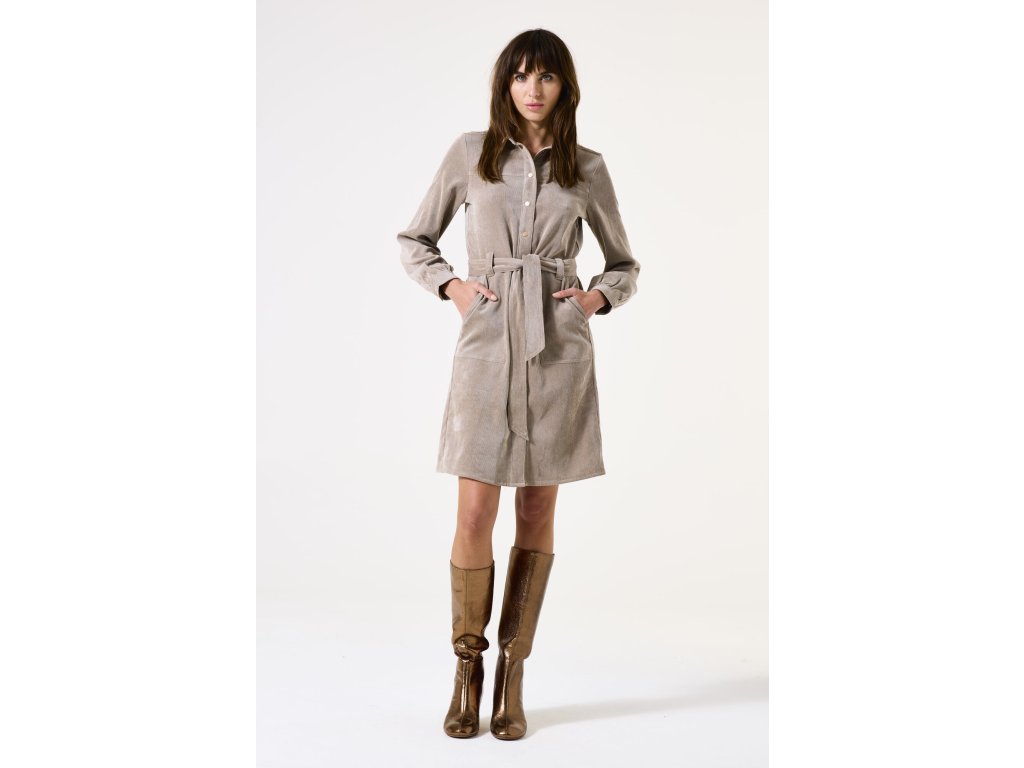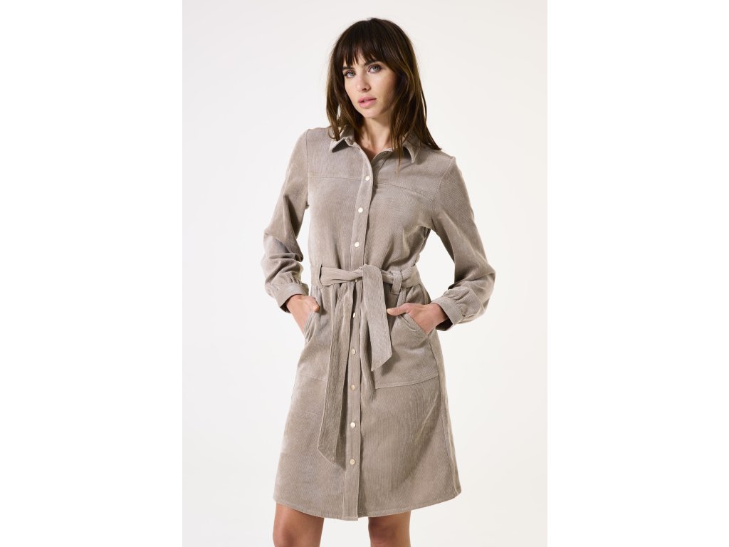 Menčestrové košeľové šaty GARCIA TAUPE