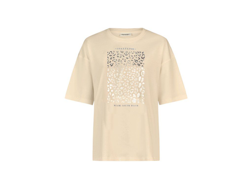 Tričko zaujme atraktívnou leoparďou potlačou, ktorú dopĺňajú nápisy „COASTLINE“ v hornej časti a „MIAMI SOUTH BEACH“ v dolnej časti predného dielu. Práve táto kombinácia vytvára moderný, uvoľnený a štýlový vzhľad, ktorý sa výborne hodí do mestských outfitov aj na voľný čas. Voľný strih pôsobí nenútene, lichotí rôznym typom postavy a poskytuje príjemný komfort bez zbytočného obmedzenia. Okrúhly výstrih podčiarkuje nadčasový charakter modelu a krátky rukáv s efektom 3/4 prepadnutého rukáva dodáva tričku jemne oversized, súčasný výraz. Bočné rozparky zvyšujú pohodlie pri pohybe a zároveň prispievajú k ľahkosti celého strihu.