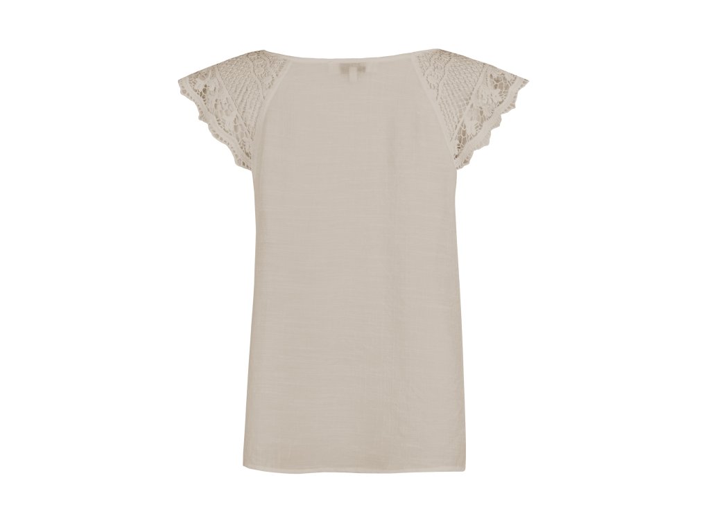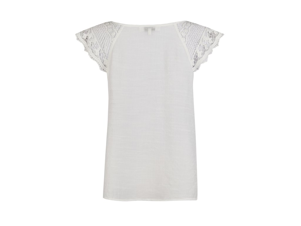 Čipkované rukávy tomuto tričku dodávajú niečo špeciálne a pôsobí veľmi žensky. Ľahký viskózový džersej voľne padne na hornú časť tela a poskytuje vám dobré pohodlie pri nosení. Tričko jednoducho skombinujete s nohavicami, šortkami alebo sukňou.