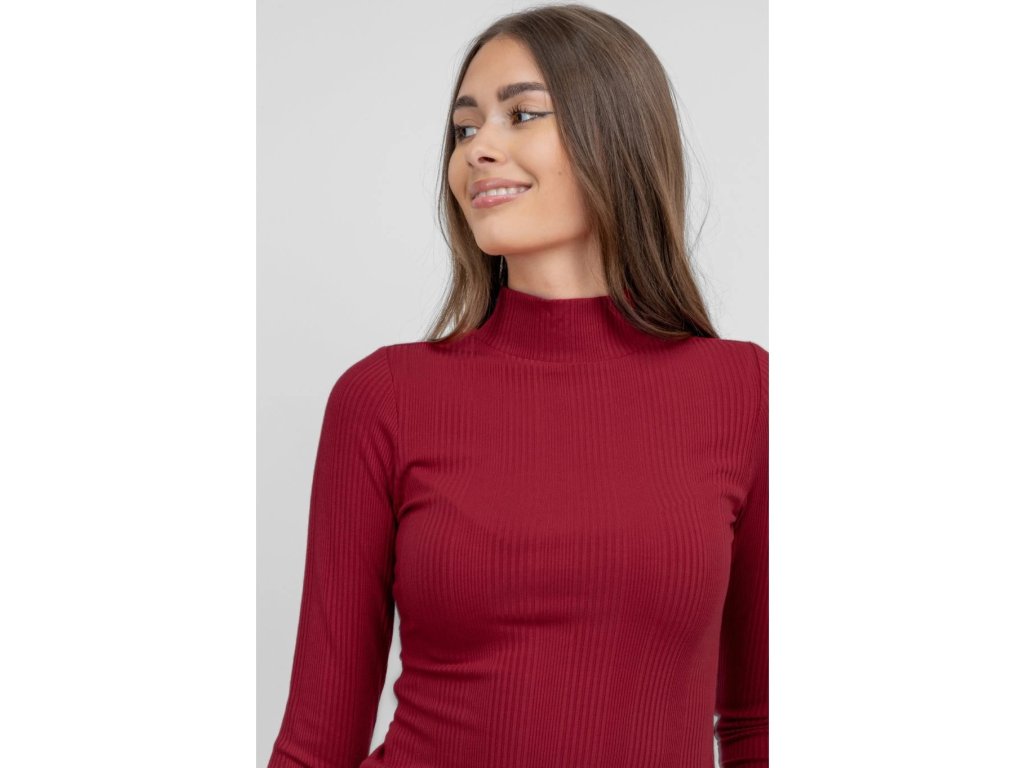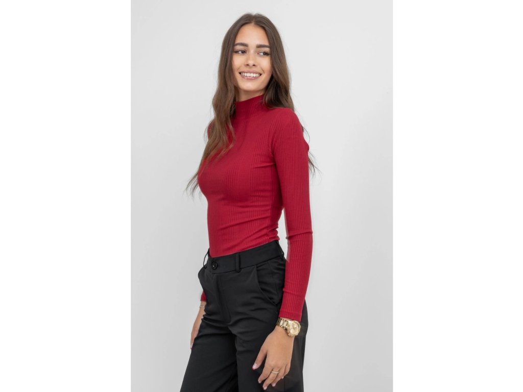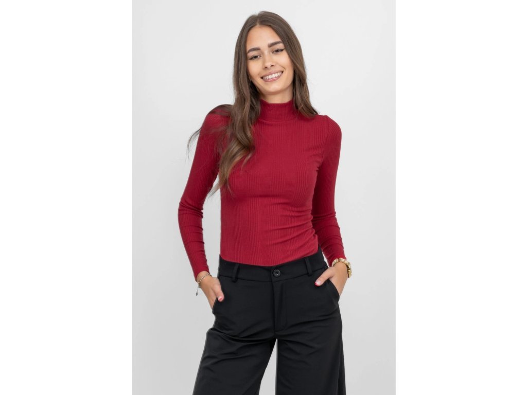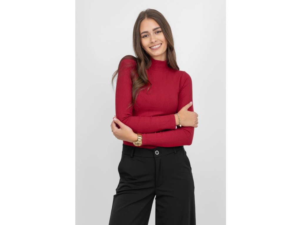 Rebrovaný rolák BROADWAY NYC FASHION DARK RED je jednoduchý, elegantný a vhodný na bežné nosenie alebo ako základný kúsok do vrstvených outfitov.